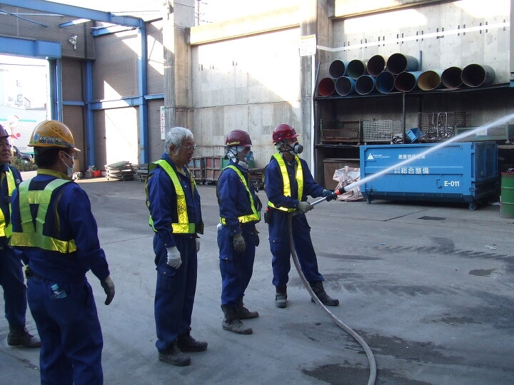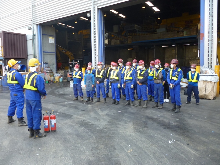 2020年11月13日(金)瑞穂工場、2020年11月16日(月)瑞穂第二工場において「秋の自主消防訓練」を実施いたしました。総勢32名(瑞穂10名、第二22名)が参加しました。今年はコロナ禍の影響もあり、リチウム電池等の混入による発火を想定し、自社設備の消火栓を使用した消火活動及び連絡網の再確認を行いました。